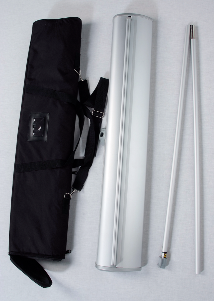 Das professionelle Roll-Up System im edlen Design. Das Motiv kann unproblematisch gewechsellt werden.