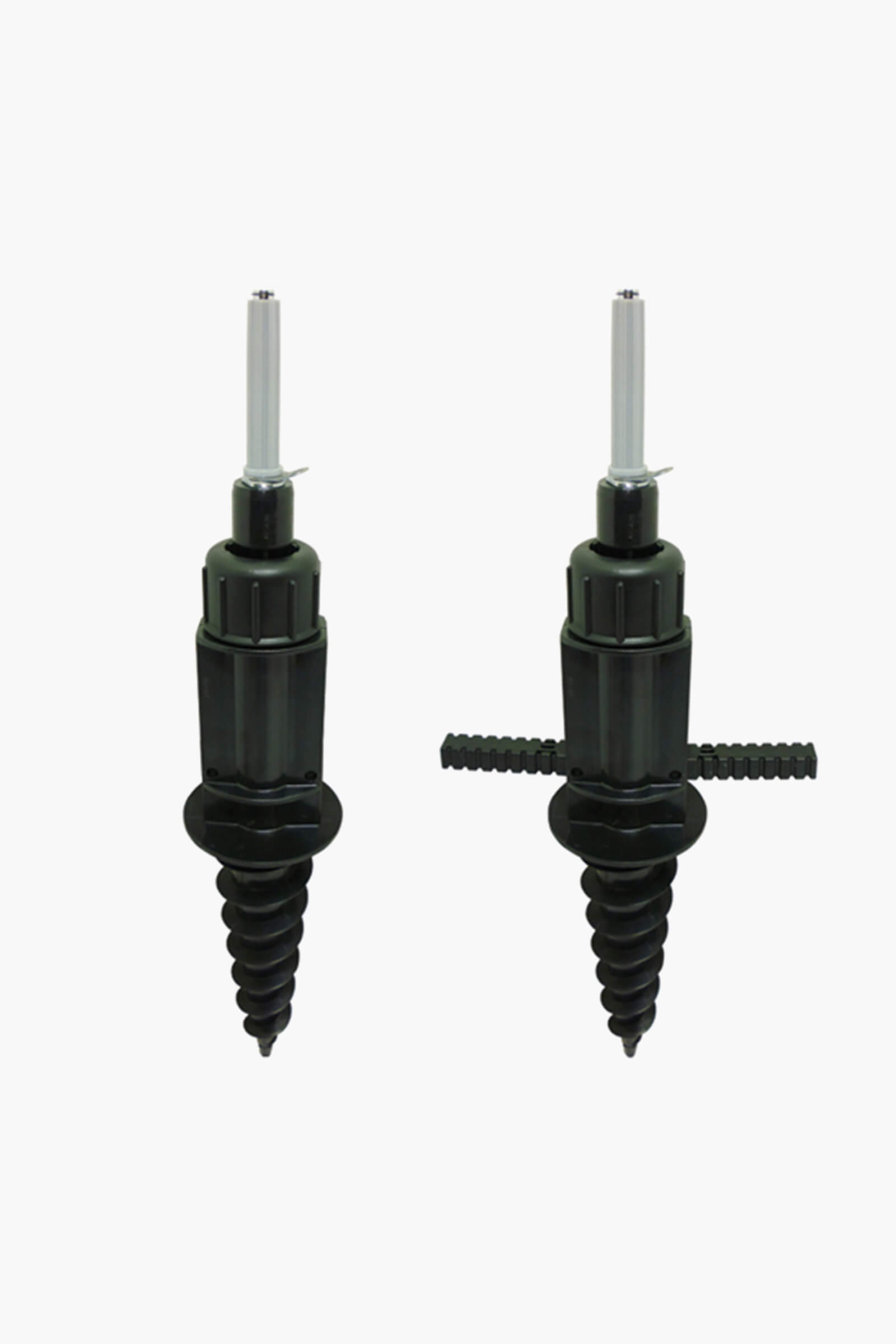 Ein Erdlochbohrer aus Kunststoff inklusive eines Halters, um die Beachflag aufzustellen.