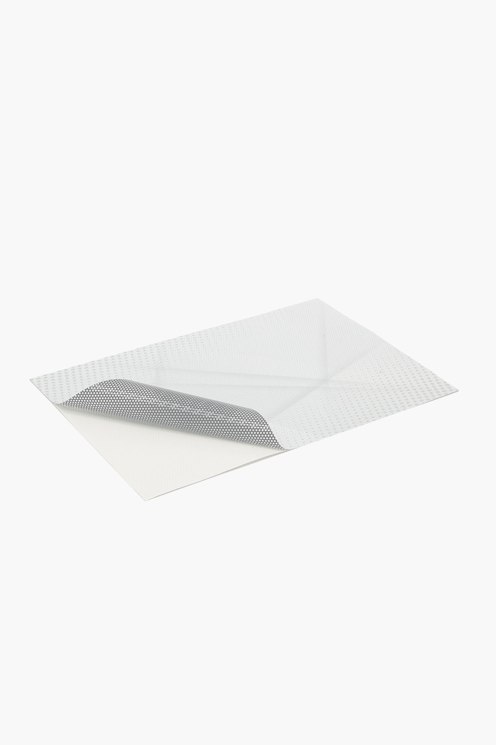 Perforierte weiße glänzende Spezial-PVC-Folie mit schwarzer Rückseite für den Einsatz auf Kfz-Scheiben (in Verbindung mit Schutzlaminat StVZO zugelassen) oder ebenen auf transparenten Substraten aus Glas. Nach dem Bedrucken der Folienvorderseite ergibt sich ein sichtbares Druckbild, wobei die perforierte schwarze Rückseite durchschaubar ist. Der Anteil der bedruckbaren Fläche gemessen an der Gesamtfläche beträgt 60%. Der geringe Lochdurchmesser von 1,5mm ermöglicht ein vergleichsweise feines Druckbild.