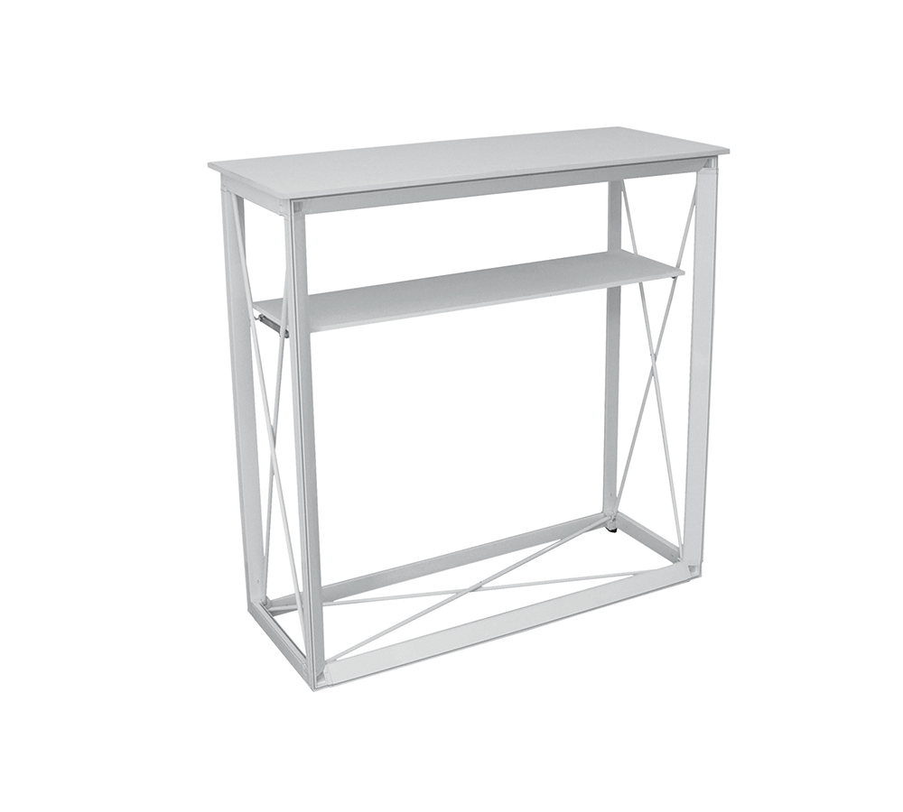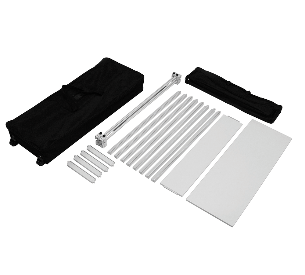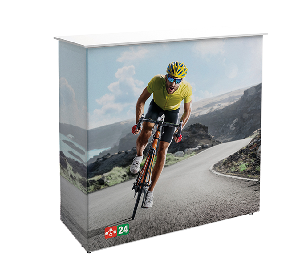 Die Textiltheke mit Flachkeder ist innerhalb weniger Minuten aufgebaut und damit ideal für Messen oder Promotion-Aktionen geeignet.