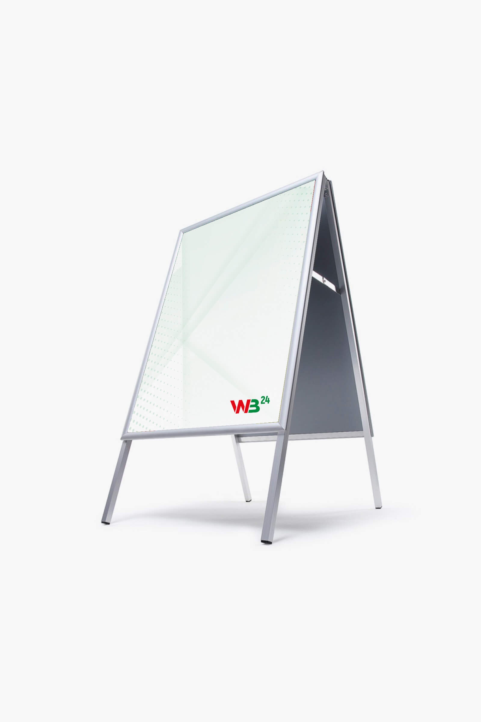 Doppelseitiger Kundenstopper mit Klapprahmen. Verfügbar in dem Format DIN A1 und A2