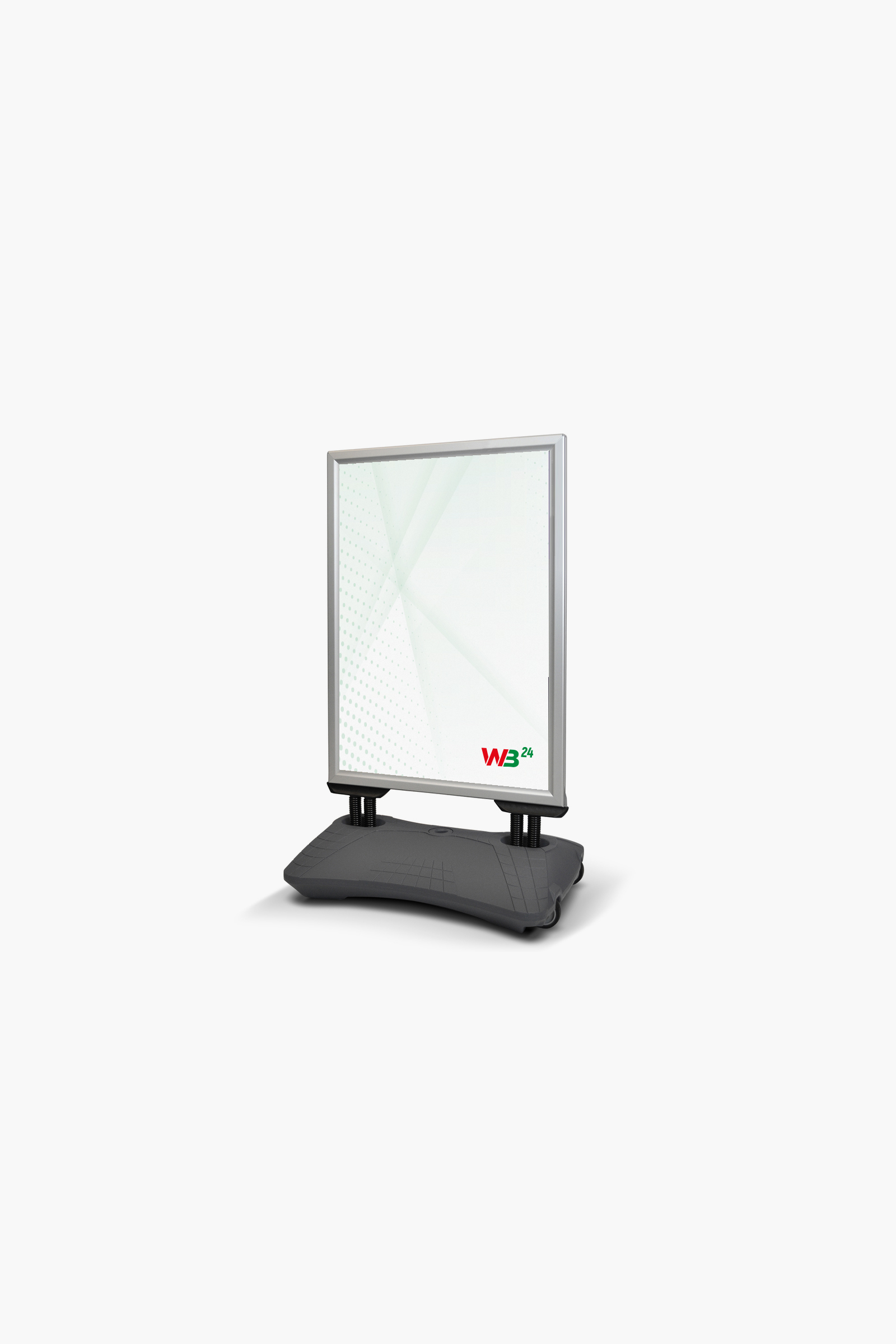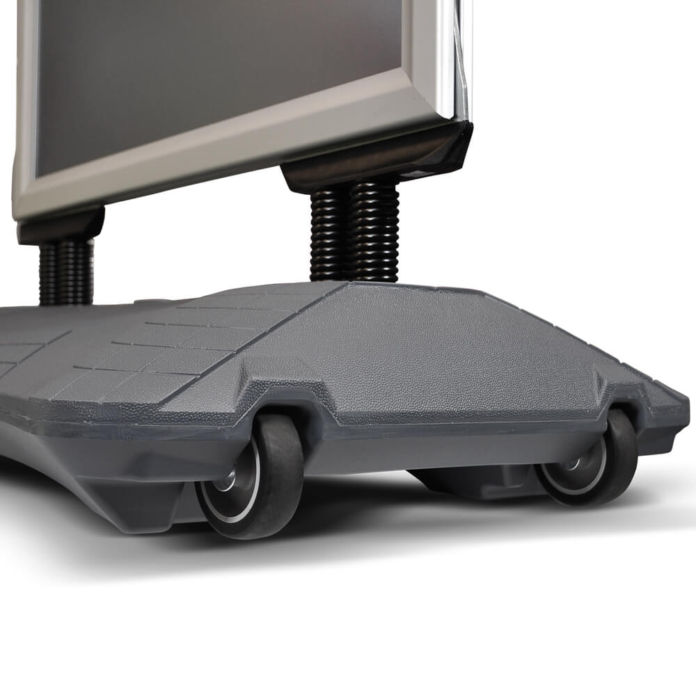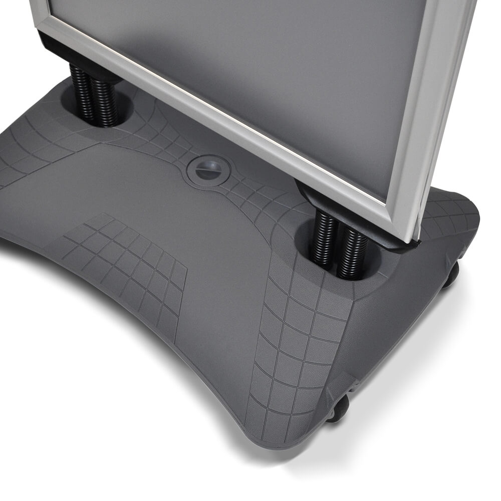 Outdoor-Kundenstopper mit Wassertank zur Beschwerung. Verfügbar in den Formaten DIN A1 und A0.
